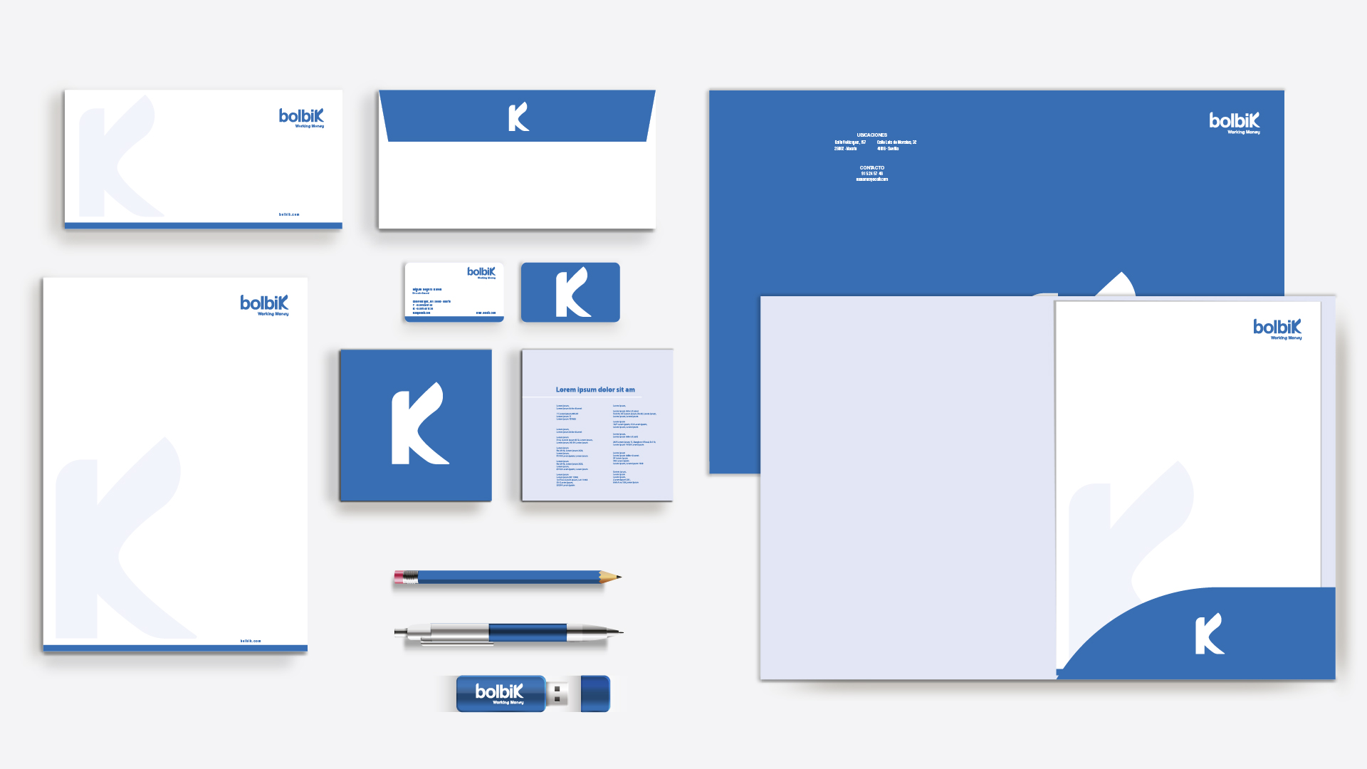 Se ha creado una identidad visual exclusiva para Bolbik, transmitiendo confianza y alto rendimiento en el sector financiero. Cada elemento gráfico sigue la filosofía de la marca, tal y como se puede apreciar en todos los elementos comunicativos. Con un diseño web a medida, comunica con claridad su filosofía Working Money: hacer que el capital trabaje para sus inversores, otorgándole una buena presencia digital.